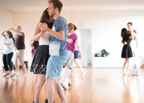 Zum Tanzen braucht man kein besonderes Talent - jede*r kann es lernen. Ihr braucht Euch nicht als Paar anzumelden, da wir immer durchwechseln. Männer können in Turnschuhen, auf Socken oder barfuß, Frauen mit flexiblen Schuhen oder auf Socken tanzen (keine Tanzschuhe mit Absätzen).