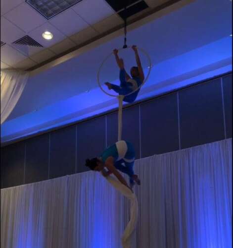 In diesem Kurs lernen wir am Aerial Hoop, einem von der Decke hängenden Reifen, elegante Tricks und fließende Kombinationen. Neben Kraft und Flexibilität wird hier an der speziellen Technik für den Ring gearbeitet, um wie schwerelos im Luftring fliegen zu können. Die Akrobatik im Vertikaltuch, auch Aerial Silk genannt, ist ebenfalls Thema des Kurses. Jeder hat im Zirkus oder Fernsehen schon einmal gesehen, wie Akrobaten, scheinbar mühelos, an von der Decke herabhängenden Tüchern kunstvolle Bewegungen präsentieren. Mit dem Besuch eines Aerial Kurses ist das nicht mehr nur noch Artisten vorbehalten, sondern für jeden erlernbar.