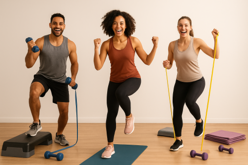 Music sets the tone throughout the session, sometimes even providing the beat – whether in basic aerobic sequences, dynamic strength routines, or flowing stretching and mobility exercises.